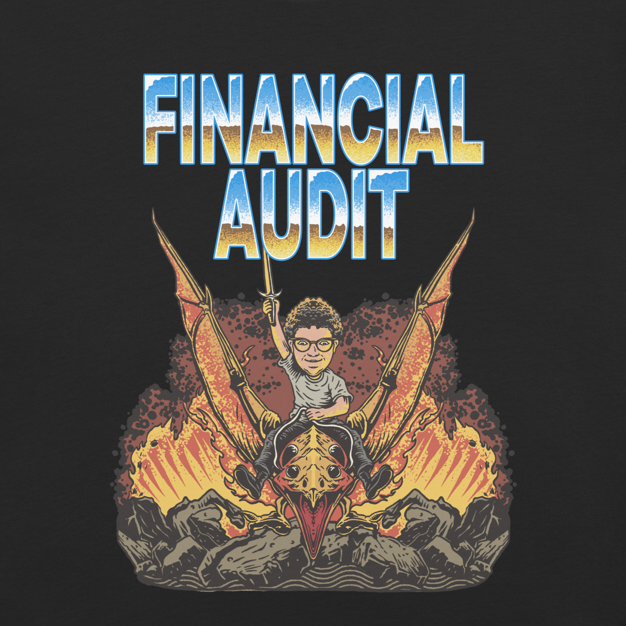 Printed on a garment-dyed heavyweight tee that is tougher than your student loans, this shirt features the Supreme Leader of the Financial Audit slaying the dragons of bad spending. Buy it with a debit card, or don't buy it at all.
